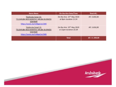 TeleAruba Canal 13: On the Aire 22 May 2019 Afl. 5.650,00