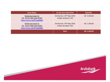 TeleAruba Canal 13: On the Aire 29 May 2019 Afl. 2.250,00