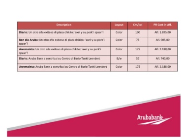 Awemainta: Aruba Bank a contribui cu Centro di Bario Tanki Leendert Color 175 Afl. 2.188,00