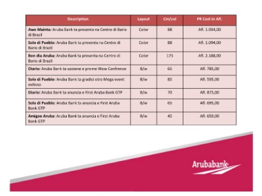 Diario: Aruba Bank ta anuncia e First Aruba Bank GTP B/w 70 Afl. 875,00