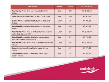Awe Mainta: Aruba Bank ta invita comunidad pa asisti Color 175 Afl. 2,188.00
