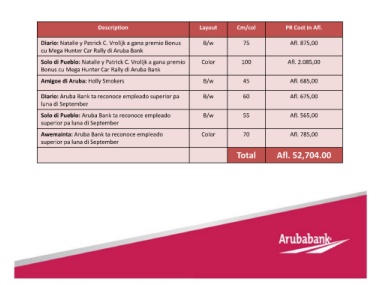 Diario: Aruba Bank ta reconoce empleado superior pa B/w 60 Afl. 675,00