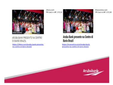 24ora.com Masnoticia.com PR Cost in Afl. 172,50 PR Cost in Afl. 172,50 https://24ora.com/aruba-bank-presente- https://masnoticia.com/aruba-bank- na-centro-di-bario-brazil/ presente-na-centro-di-bario-brazil/