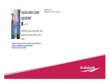 Diario.aw PR Cost in Afl. 172,50 https://www.diario.aw/2019/10/aruba- bank-a-celebra-su-customer- appreciation-week/