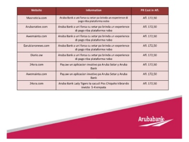 24ora.com Pay.aw un aplicacion invativo pa Aruba Setar y Aruba Afl. 172,50
