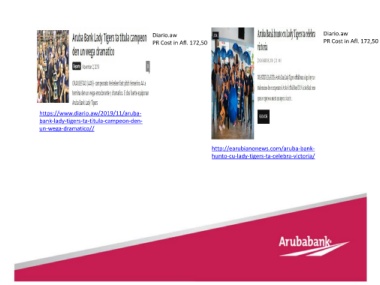 Diario.aw Diario.aw PR Cost in Afl. 172,50 PR Cost in Afl. 172,50 https://www.diario.aw/2019/11/aruba- bank-lady-tigers-ta-titula-campeon-den- un-wega-dramatico// http://earubianonews.com/aruba-bank- hunto-cu-lady-tigers-ta-celebra-victoria/