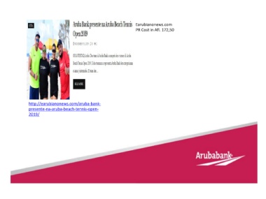 Earubianonews.com PR Cost in Afl. 172,50 http://earubianonews.com/aruba-bank- presente-na-aruba-beach-tennis-open- 2019/