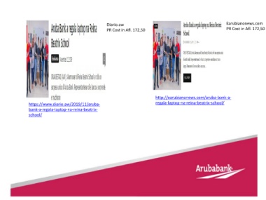 Diario.aw Earubianonews.com PR Cost in Afl. 172,50 PR Cost in Afl. 172,50 http://earubianonews.com/aruba-bank-a- https://www.diario.aw/2019/11/aruba- regala-laptop-na-reina-beatrix-school/ bank-a-regala-laptop-na-reina-beatrix- school/