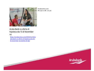 Arubanative.com PR Cost in Afl. 172,50 https://arubanative.com/2019/11/14/ar uba-bank-cu-oferta-di-hipoteca-dia-15- di-november-na-evento-di-dip/