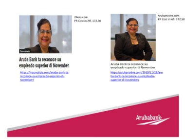 24ora.com Arubanative.com PR Cost in Afl. 172,50 PR Cost in Afl. 172,50 https://masnoticia.com/aruba-bank-ta- https://arubanative.com/2019/11/28/aru reconoce-su-empleado-superior-di- ba-bank-ta-reconoce-su-empleado- november/ superior-di-november/