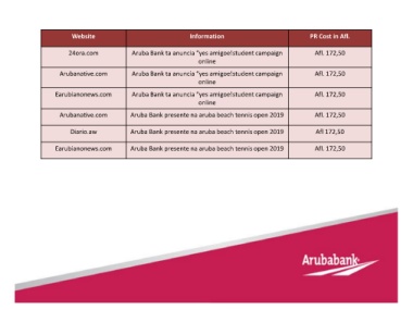 24ora.com Aruba Bank ta anuncia “yes amigoe!student campaign Afl. 172,50