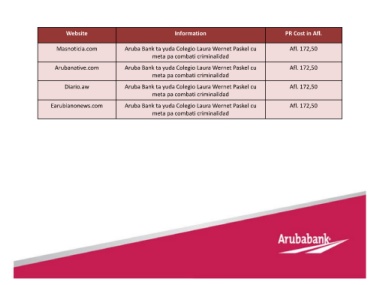 Earubianonews.com Aruba Bank ta yuda Colegio Laura Wernet Paskel cu Afl. 172,50