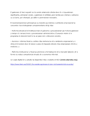 E recomendacionnan principal pa cu maneho pa mehora e ambiente empresarial ta