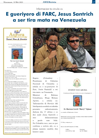 Cervantes Angulo, Merary Cervantes Angulo Farc, ‘Jesús Santrich’ a ser STATEN VAN ARUBA