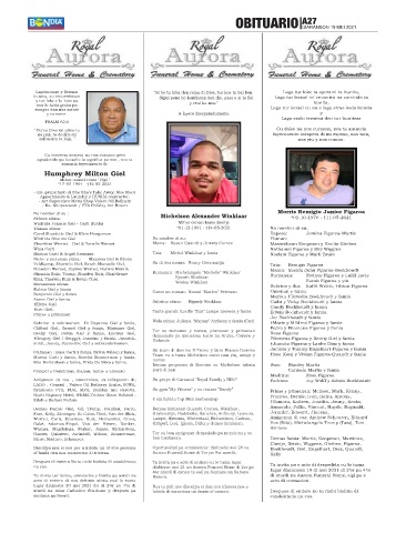 na cas. diabierne mei 21 na Aurora Funeral Home di 2or pa Ta invita pa e acto di despedida cu lo tuma