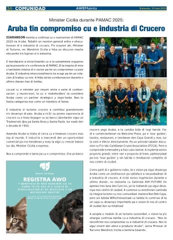 n’e desaroyo di pais. Aruba a ricibi su prome experencia di