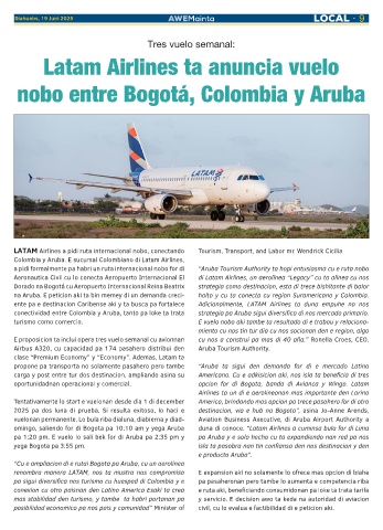 omingo, saliendo for di Bogota pa 10:10 am y yega Aruba duna di conoce. “Latam Airlines a cuminsa bula for di Lima