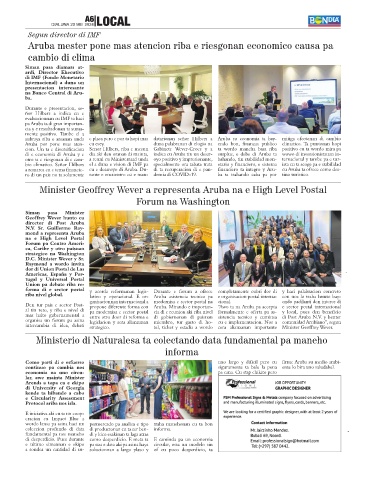 a remarca cu e tema financie- cu e desaroyo di Aruba. Du- di ta recuperacion di e pan- financiero ta integro y Aru- cu Aruba ta ofrece como des-