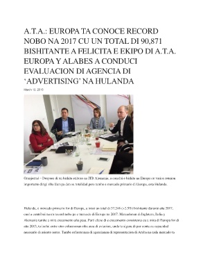 Oranjestad – Despues di un bishita exitoso na ITB Alemania, a conclui e bishita na Europa cu varios reunion