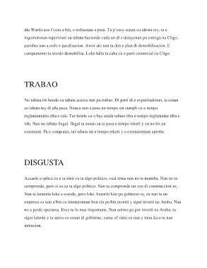 dia Warda nos Costa a bin, e trabaonan a para. Ta p’esey esnan cu tabata tey, ta e