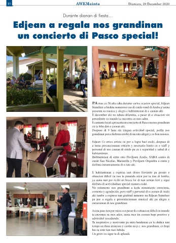 E cantante local a presenta un concierto di Pasco na nos grandinan