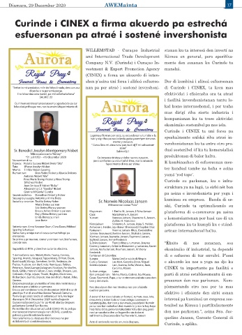 loke elasigni ca pa nos, nos ta anunciafayecimiento di: kal komo internashonal, i por traha