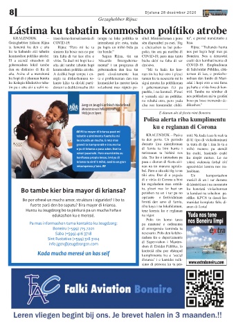 konmoshon polítiko atrobe. tira falta di tur kos riba e Segun Rijna, tin un COVID-19, pero mas tantu Boneiru. Nos a demostrá