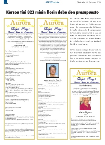 dia 18 di feb 2021 di 9or pa 11or na aurora funeral home Muyale Diamars, 16 Februari 2021, 5:30 pm na Kapel di Alto Vista