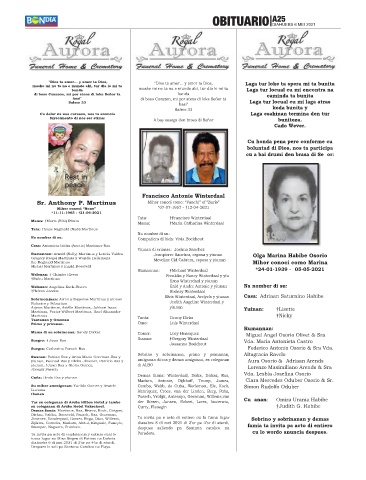 Ta invita pa acto di condolencia y entiero cual lo Paradera. cu lo wordo anuncia despues.