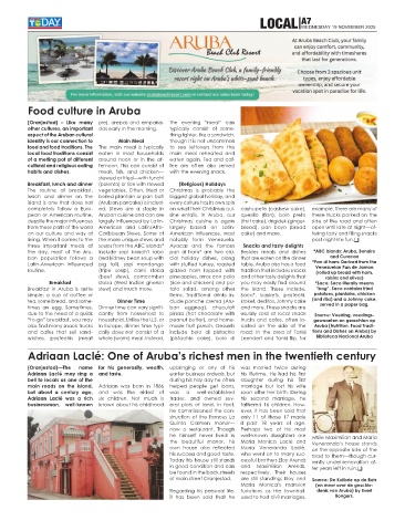 the day, most of the Aru- include sopi bonch’i rabo pan di ham* are two cru- Besides meals and dishes *ABC Islands: Aruba, Bonaire