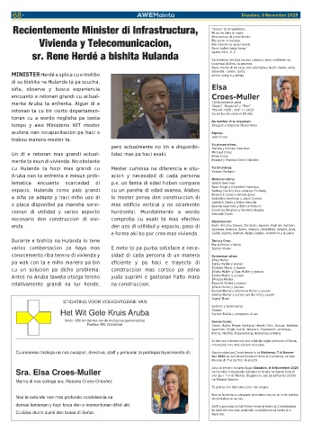 Sra. Elsa Croes-Muller Acto di entiero ta tuma lugar Diasabra, 8 di November 2025