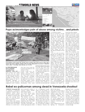 victims, but also acknowl- Francis celebrates Mass on brought some inmates to knew of complaints against Karadima case and cover-
