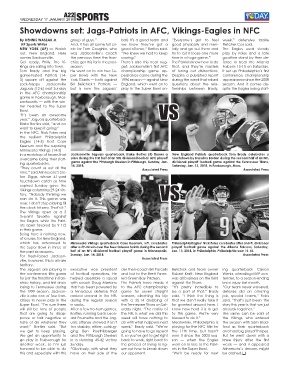 Showdowns set: Jags-Patriots in AFC, Vikings-Eagles in NFC