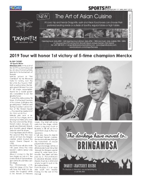 2019 Tour will honor 1st victory of 5-time champion Merckx