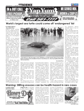 of the turtles. said. “And then we’ll say, turtles worldwide, said An- fishermen fear the govern- and most migratory of all