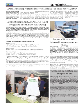 Interesadonan pa cu e seminario anti-doping por registra na info@olympicaruba.com of por Bureau MFA kier a extende un invitacion cordial na pueblo
