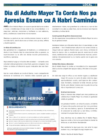 hoben na trabou of ofreciendo ayudo invaluable den nan fami- Dia di Adulto Mayor ta tambe un recordatorio di e responsabil-