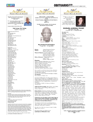 Aurora Funeral Home diahuebs 24 di September e acto di entierro cual lo tuma lugar Diasabra 3 October