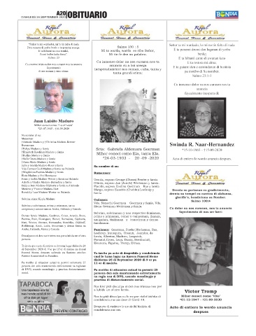 Funeral Home, despues saliendo pa Santana catolico Ta invita pa acto di despedida y condolencia