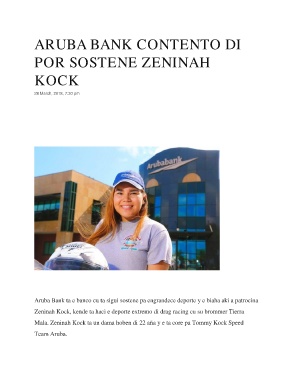 Aruba Bank ta e banco cu ta sigui sostene pa engrandece deporte y e biaha aki a patrocina