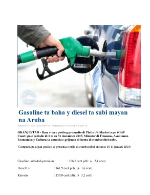 Compaña pa algun grafico ta presenta e prijs di combustibel entrante 10 di januari 2018: