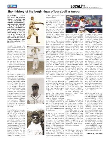 Interestingly, it was in Aruba to participate. ment of the sport and be- who earned baseball schol-