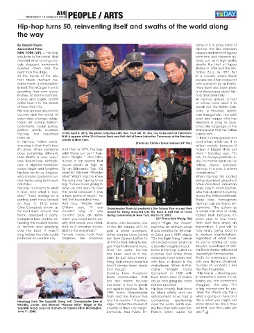 Clive Campbell, known as O’Brien says, “If you Grandmaster Flash (at podium) & the Furious Five accept their erywhere. “The culture as