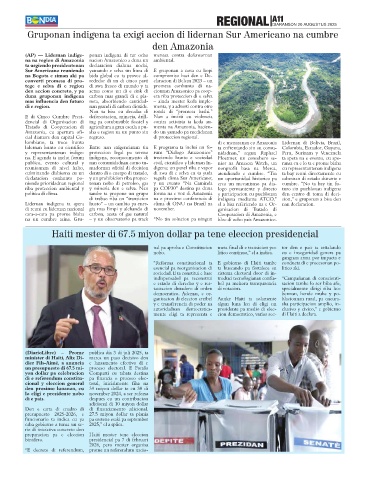 y representantenan indige- proteccion legal pa tereno rum “Dialogo Amazonico” nidadnan,” segun Raphael Peru, Surinam y Venezuela