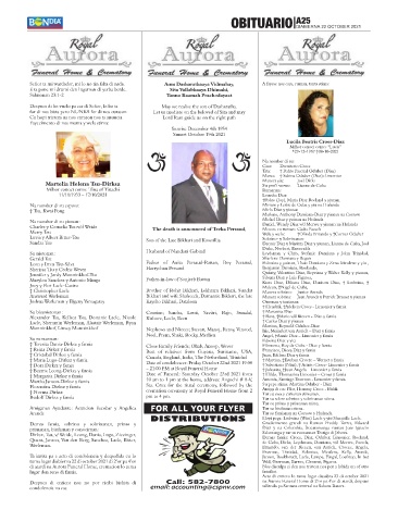 Despues di entiero nos no por ricibi bishita di Call: 582-7800 na Aurora Funeral Home di 2’or pa 4’or di atardi, despues
