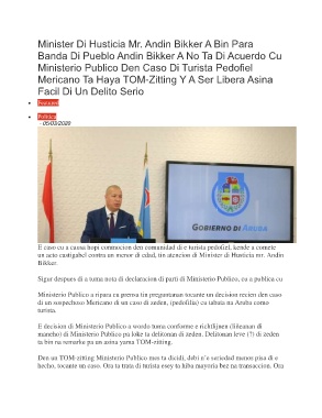 Ministerio Publico Den Caso Di Turista Pedofiel