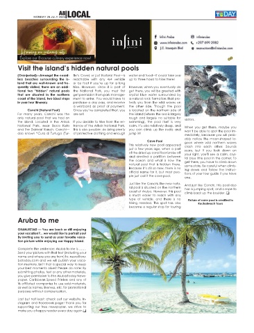 (Oranjestad)—Amongst the count- tle’s Cove) or just Natural Pool—is water and food—it could take you