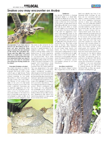 The small Cascabel or Aruba Is- Park was designated in the early Boas are Aruba’s largest snakes. National Park, as they are experi-
