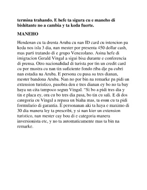 nan estadia na Aruba. E persona cu pasa su tres dianan,