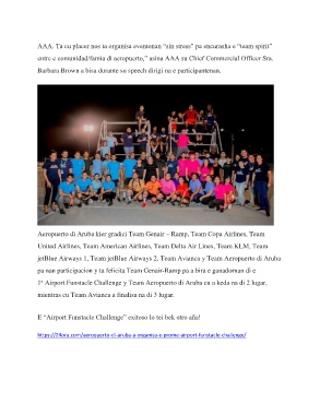 1 Airport Funstacle Challenge y Team Aeropuerto di Aruba cu a keda na di 2 lugar,